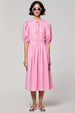 Rosa Baumwolle Gerafftes A-Linie Hochzeitsgastkleid