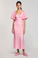 Rosa Etui Chiffon Quadratischer Ausschnitt Hochzeitsgastkleid