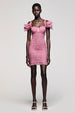 Rosa Jacquard Kalte Schulter Etui Mini Hochzeitsgastkleid