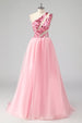 Rosa Eine Schulter Aushöhlen A Linie Langes Ballkleid mit Applikationen