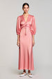 Rosa Satin Etui V-Ausschnitt Hochzeitsgastkleid mit Ärmeln