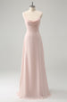 Rosa Spaghettiträger Wasserfallausschnitt Chiffon Brautjungfernkleid