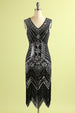 Rot & Schwarz Glitzer Fransen 1920er Jahre Flapper Kleid