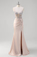 Blush Spaghettiträger Meerjungfrau Korsett Perlenbesetztes langes Ballkleid