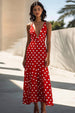 Rotes Spaghettiträger V-Ausschnitt A-Linie Weißes Polka Dots Kleid