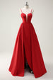 Rotes Spaghettiträger Langes Ballkleid mit Schlitz und Schnürung