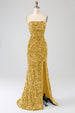 Rotes trägerloses Pailletten langes Meerjungfrauen Ballkleid mit Schlitz