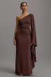 Rüschen Kaffee Eine Schulter Langärmeliges Ballkleid