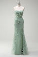 Dieses A-Linien Ballkleid in Salbei mit zarten Blumenapplikationen und einem seitlichen Schlitz ist perfekt für Hochzeitsfeiern, Abschlussbälle, Abendpartys und andere besondere Anlässe. Die floralen Details und die grazile Silhouette verleihen dem Kleid einen märchenhaft eleganten Look.