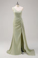 Salbei Eine Schulter Satin Meerjungfrau Brautjungfernkleid mit Schlitz