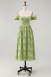 Salbeigrün A-Linie Schulterfreies Geblümtes Midi Brautjungfernkleid