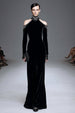 Samt Schwarzes Abendkleid mit hohem Kragen und langen Ärmeln