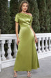 Satin-Matcha-Kleid mit kurzen Ärmeln