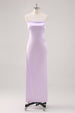 Schlichtes Flieder Etui Ballkleid mit Schnürung