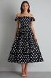 Schulterfreies A-Linie Kleid mit schwarzen weißen Polka Dots