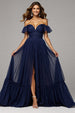 Schulterfreies A Linie Langes Marineblaues Ballkleid mit Schlitz