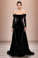 Schwarzes Schulterfreies Langes Abendkleid aus Samt mit Ärmeln