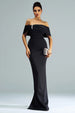 Schulterfreies Meerjungfrau Schwarzes Hochzeitsgastkleid