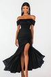 Schulterfreies Meerjungfrauen Schwarz Krawatte Kleid mit Schlitz