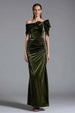 Schulterfreies Olivfarbenes Gerafftes Langes Ballkleid mit Schleife