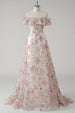 Schulterfreies Rosa Geblümtes Ballkleid mit Pailletten