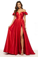 A-Linie Schulterfreies Rotes Ballkleid mit Schlitz