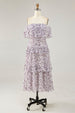 Lila Schulterfreies Kleid für Hochzeitsgäste mit Blumendruck in A-Linie