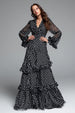 Schwarz-Weißes Langes Ballkleid mit Rüschen und Ärmeln