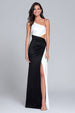 Schwarz-weißes Satin Etui Langes Ballkleid mit Schlitz