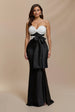 Schwarz-Weißes Trägerloses Gerafftes Meerjungfrauen Urlaubskleid