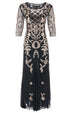 Schwarzes goldenes Pailletten Kleid aus den 1920er Jahren