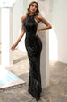 Schwarzes Pailletten Meerjungfrau Ballkleid