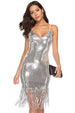 Schwarze Pailletten Spaghettiträger Fransen Cocktailkleid