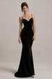 Schwarzes Spaghettiträger Meerjungfrau Ballkleid