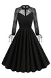Schwarzes A-Linie Langarmkleid aus den 1950er Jahren mit Spitze