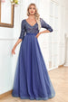 Schwarzes A-Linie V-Ausschnitt Pailletten Ballkleid mit kurzen Ärmeln