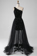 Schwarzes A-Linie Pailletten Pailletten Ballkleid