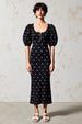 Schwarzes Etui Hochzeitsgastkleid mit Polka Dot