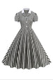 Schwarzes A-Linie Kleid mit Streifen aus den 1950er Jahren und Ärmeln