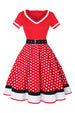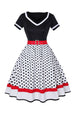 Schwarzes Polka Dots Rockabilly Kleid mit V-Ausschnitt aus den 1950er Jahren