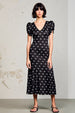 Schwarzes Langes Hochzeitskleid aus Satin mit V-Ausschnitt und Ärmeln