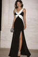 Dieses elegante schwarze Meerjungfrauen-Ballkleid aus Satin mit V-Ausschnitt und Schlitz verleiht Ihnen eine atemberaubende Silhouette. Perfekt für eine Hochzeitsfeier, einen Abschlussball oder eine Abendparty – dieses Kleid wird Ihnen alle Blicke auf sich ziehen und Sie zum Star des Abends machen.