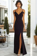 Schwarzes Meerjungfrauen Langes Ballkleid mit Schlitz
