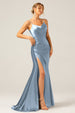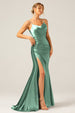 Schwarzes Meerjungfrauen Spaghettiträger Plissee Korsett Langes Ballkleid mit Schlitz