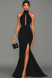 Schwarzes Meerjungfrauen Satin Abendkleid mit Neckholder