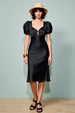Schwarzes Midikleid für Hochzeitsgäste mit Puffärmeln in A-Linie