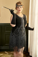 Schwarzes Übergröße 1920er Jahre Flapperkleid mit Fransen