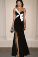 Schwarzes Satin Militär Ballkleid mit einer Schulter und Schlitz