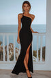 Schwarzes Satin Etui Langes Ballkleid mit Schlitz