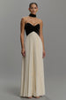 Schwarzes und Elfenbein Langes Ballkleid aus Chiffon in A-Linie